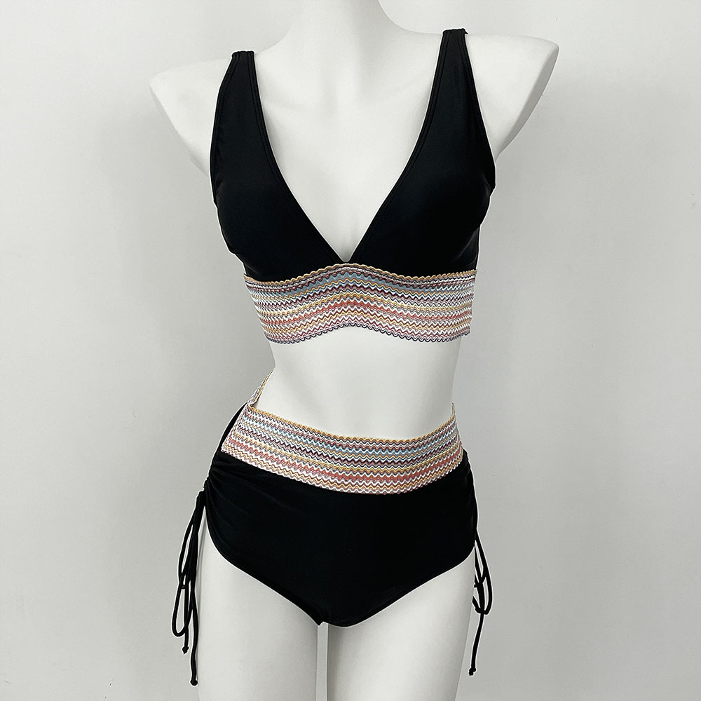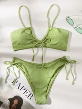Halter Knotted Tie Ribbed Bikini Female Swimsuit Women Swimwear Two-pieces Bikini Set High Leg Cut Bather Bathing Suit Swim Lady