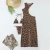 Halter Leopard Beach Cover Up Bikini Women Swimwear Female Swimsuit Three-pieces Bikini Set Mini Micro Bathing Suit Swim Lady