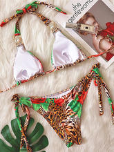 Halter Leopard Bikinis 2025 Jewelled Diamond Bikini Women Swimwear Female Swimsuit Two-pieces Bikini Set Bathing Suit Swim