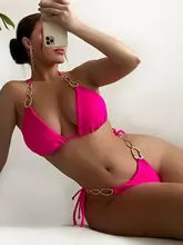 Halter Metal Chain Diamond Bikini 2025 Women Swimsuit Female Swimwear Two Pieces Bikini Set High Cut Bathing Suit Swim Lady