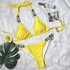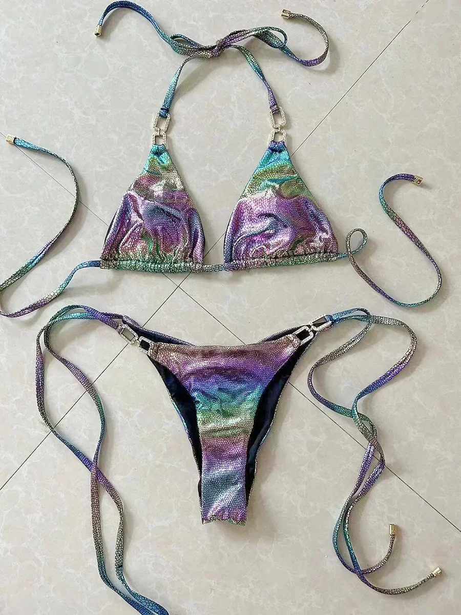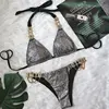 Halter Metal Chains Rhinestone Diamond Bikini Women Swimsuit Female Swimwear Two Pieces Bikini set Brazilian Bathing Suit Swim