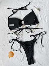 Halter Metal Chains Strappy Brazilian Bikini Female Swimsuit Women Swimwear Two-pieces Bikini Set Bather Bathing Suit Swim Lady