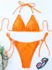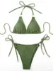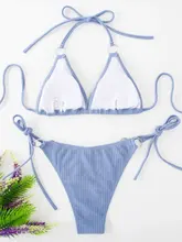 Halter Metal Ring Ribbed Bikini Women Swimwear Female Swimsuit Two-pieces Bikini Set Brazilian Bathing Suit Swim Lady Beach Wear