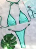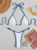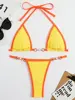 Halter Pearl Extreme Mini Micro Bikini Female Swimsuit Women Swimwear Two-pieces Bikini set Ribbed Bather Bathing Suit Swim