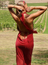 Halter Polka Dot Maxi Dress For Women Elegant Deep V Neck Backless Lace-up Bodycon Club Party Long Dress Vestido