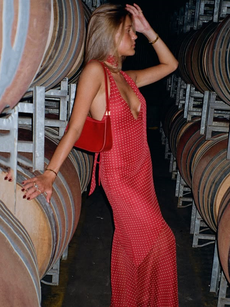Halter Polka Dot Maxi Dress For Women Elegant Deep V Neck Backless Lace-up Bodycon Club Party Long Dress Vestido