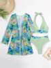 Halter Print Bikini 2025 Women Swimsuit With Kimono High Waist Swimwear Female Bathers Bathing Swimming Swim Suit Beachwear