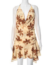 Halter Print Mini Dress For Women Robe Elegant Deep V Neck Sleeveless Backless Ruffled High Waist Beach Dress