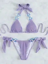 Halter Rings Ribbed Bikini 2025 Female Swimsuit Women Swimwear Two-pieces Bikini Set Brazilian Bathing Suit Swim Beach Wear