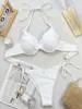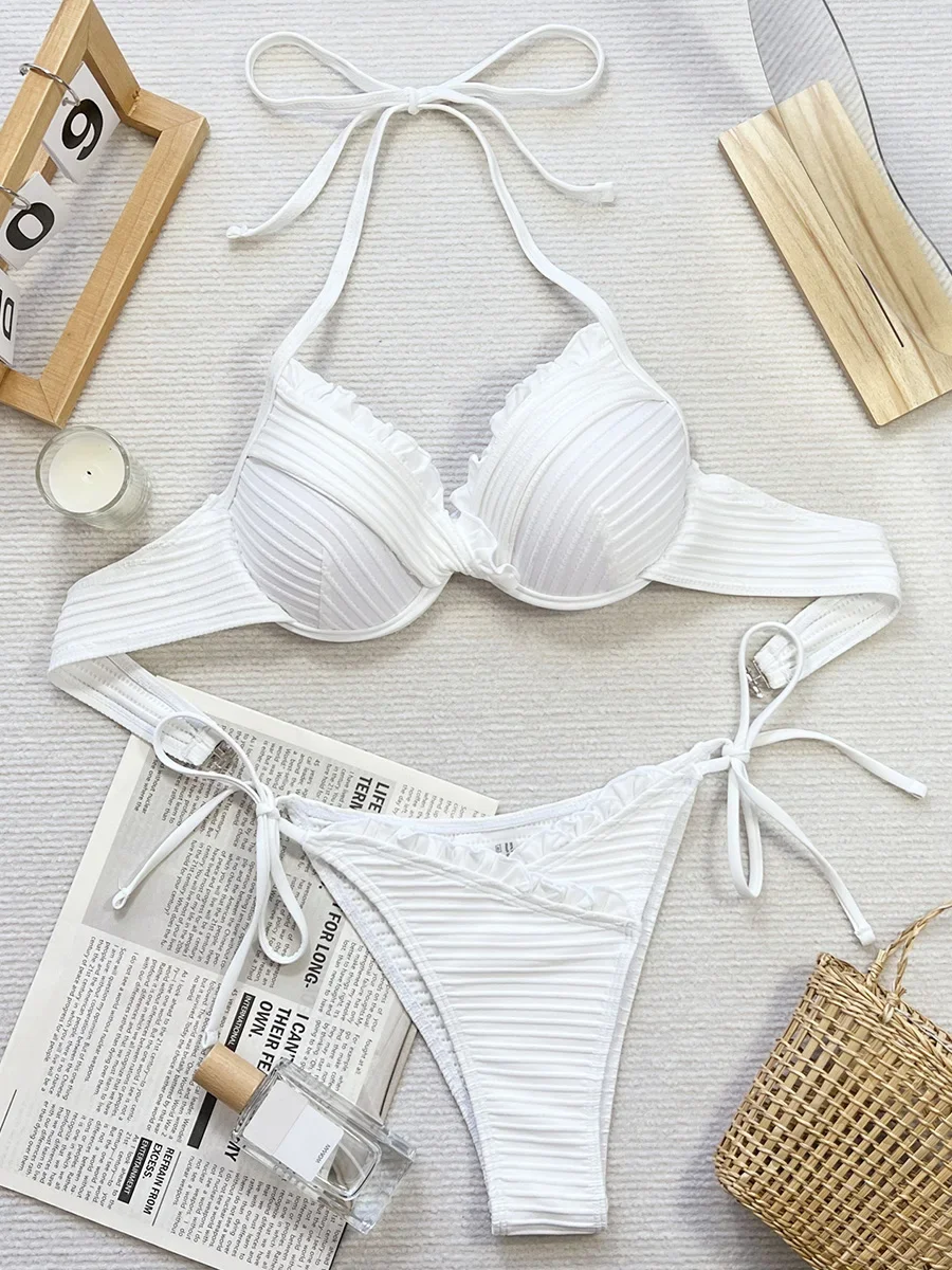 Halter Ruffled Frilled Underwired Bra Cup Bikini Women Swimwear Female Swimsuit Two-pieces Bikini Set Push Up Bathing Suit Swim