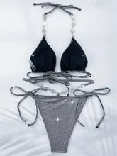 Halter Sequins Diamond Rhinestones Bikini Women Swimwear Female Swimsuit Two-pieces Bikini Set High Cut Bathing Suit Swim Lady