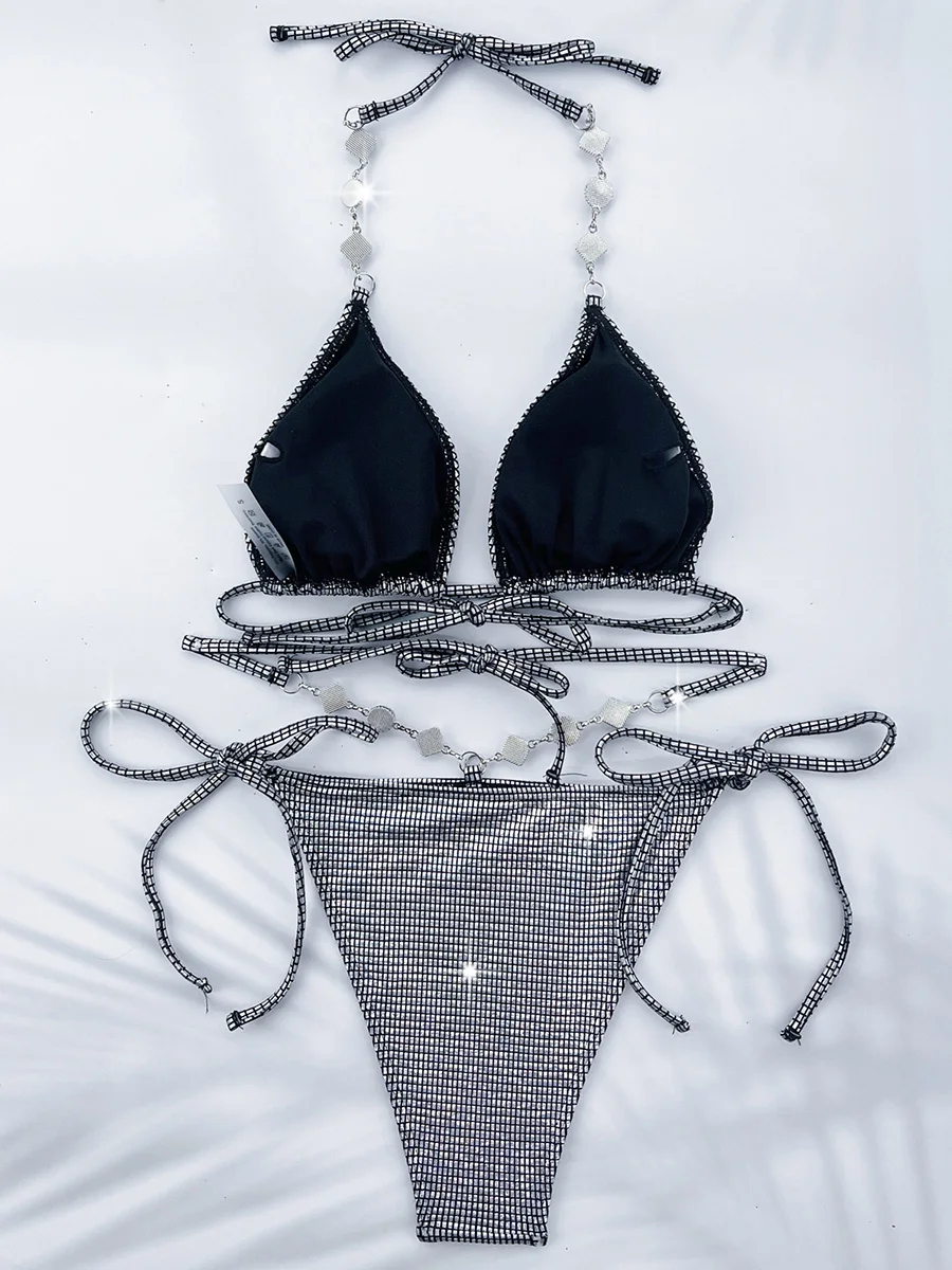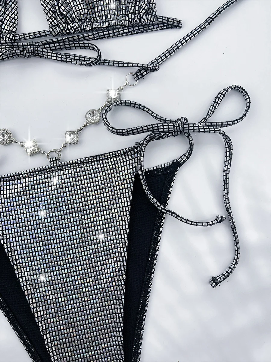 Halter Sequins Diamond Rhinestones Bikini Women Swimwear Female Swimsuit Two-pieces Bikini Set High Cut Bathing Suit Swim Lady