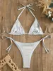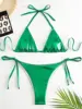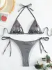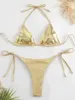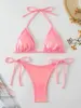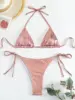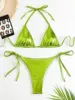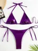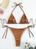 Halter Shiny Pu Faux Leather Bikini 2025 Women Swimwear Female Swimsuit Two-pieces Bikini set String Bathing Suit Swim Lady