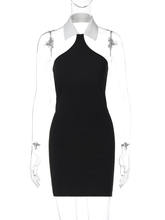 Halter Sleeveless Mini Dress For Women Patchwork Off-shoulder Backless Skinny Club Party Dress