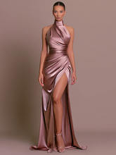 Halter Sleevelessthigh High Split Maxi Dress For Women Backless Bodycon Club Party Evening Long Dress