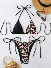Halter Splicing Leopard Bikinis 2025 Mini Micro Bikini Female Swimsuit Women Swimwear Two-pieces Bikini Set Bathing Suit Swim