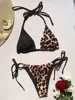 Halter Splicing Leopard Bikinis 2025 Mini Micro Bikini Female Swimsuit Women Swimwear Two-pieces Bikini Set Bathing Suit Swim