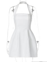 Halter Square Collar Backless Mini Dress For Women Solid Sleeveless A-line Loose Club Party Dress Elegant
