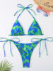 Halter String Bikini Random Print Trikini Swimsuit Women Padded Swimwear Female Bathers Bathing Swimming Swim Suit Beachwear