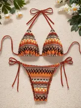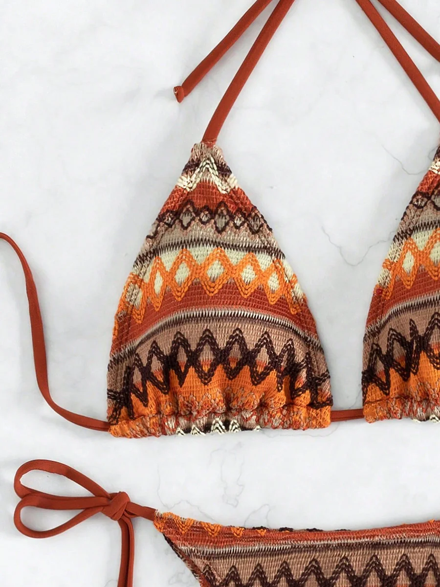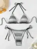 Halter Striped Knitted Bikini Women Swimsuit Female Swimwear Two Pieces Bikini Set High Cut Bather Bathing Suit Swim Beachwear