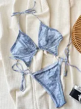 Halter Tummy Cut Out Female Denim Swimwear One Piece Swimsuit Women Backless Monokini High Cut Bathing Suit Swim Beach Wear