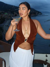 Halter V Neck Crop Tops Women Sleeveless Backless Ruched Tank Tops Female Solid Club Tops Elegant