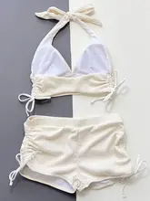 Halter V Neck Ribbed Bikinis Female Swimsuit High Waist Bikini Women Swimwear Two-pieces Bikini Set Shorts Bathing Suit Swim