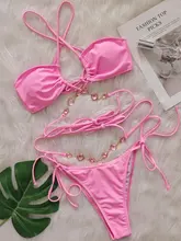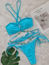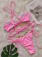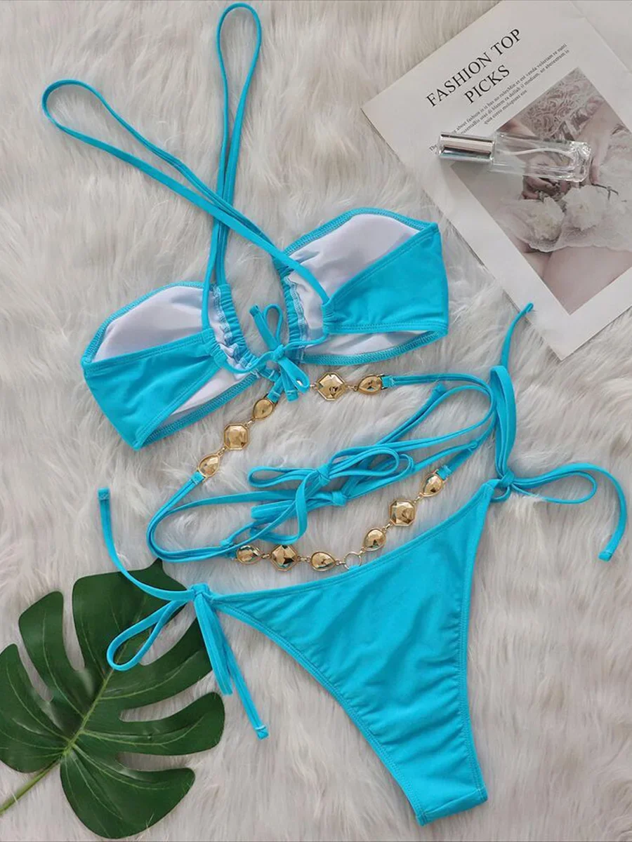 Halter Wrap Around Rhinestones Diamond Bikini Female Swimsuit Women Swimwear Two-pieces Bikini Set Bathing Suit Swim Beach Wear