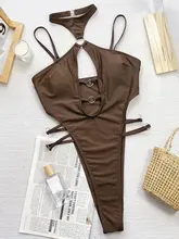 High Neck Extreme String Thong Female Swimwear One Piece Swimsuit Women High Cut Monokini Hollow Out Bathing Suit Swim Beachwear