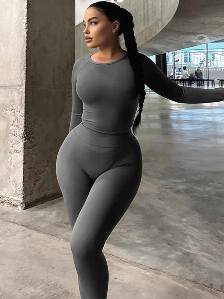 High Stretch Yoga Pants Set Women O Neck Long Sleeve T-shirt And Pants Female Casual Sporty Fitness Two Piece Set