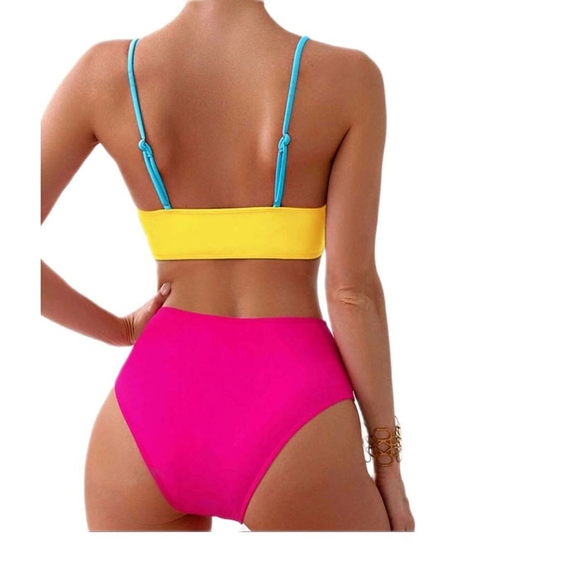 High Waist Bikini 2025 Cross Backless Women Swimsuit Patchwork Tight Beachwear Bikini Set Seaside Sling Pool Swimwear