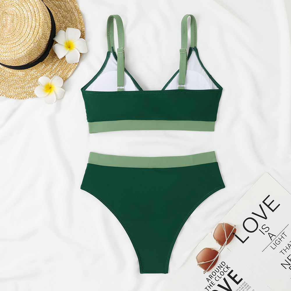 High Waist Bikini 2025 Cross Backless Women Swimsuit Solid Tight Beachwear Bikini Set Seaside Sling Pool Swimwear