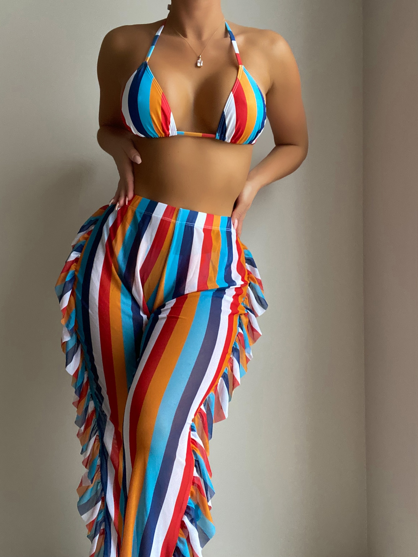 High Waist Bikini 2025 Women High Neck Swimwear Female Swimsuit Solid Bathers Swimming Bathing Swim Suit Summer Beachwear