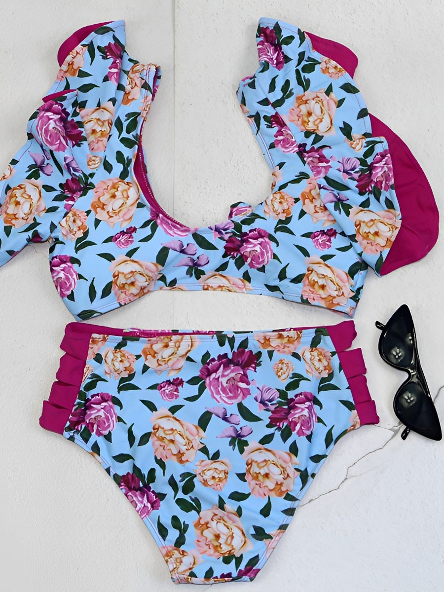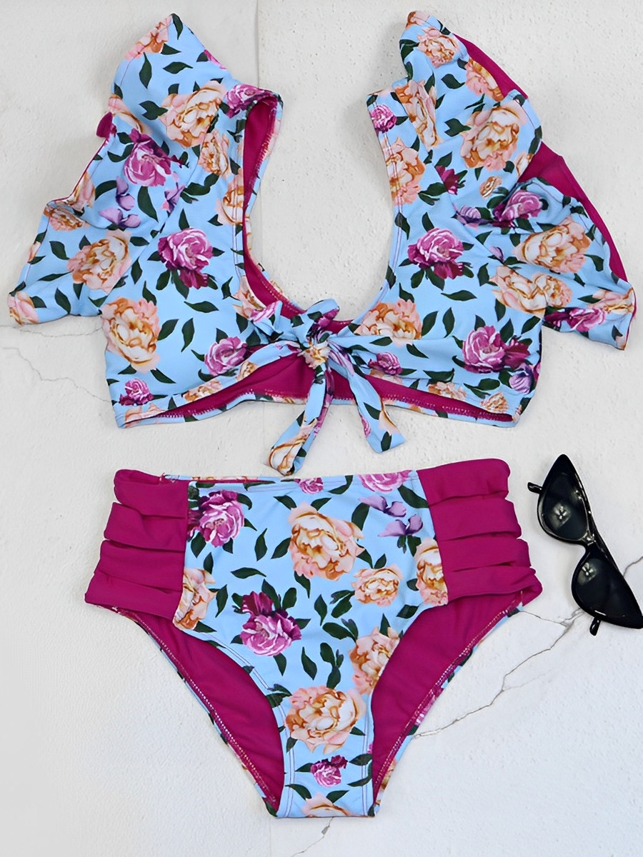 High Waist Bikini 2025 Women Ruffle Swimsuit Floral Swimwear Female Padded Bathers Bathing Swim Suit Swimming Beachwear Summer