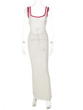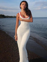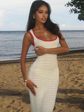 Hollow Out Backless Knit Maxi Dress For Women White Spaghetti Strap Sleeveless Bodycon Club Party Knitted Dress