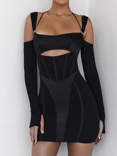 Hollow Out Backless Mini Dress For Women Elegant Spaghetti Strap Bodycon Party Short Dresses Vestido Clubwear