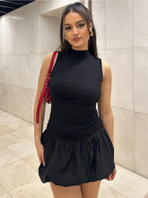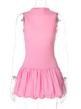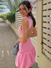 Hollow Out Backless Sleeveless Mini Dress For Women Summer Solid O Neck Slim Pleated Dress Elegant 2024