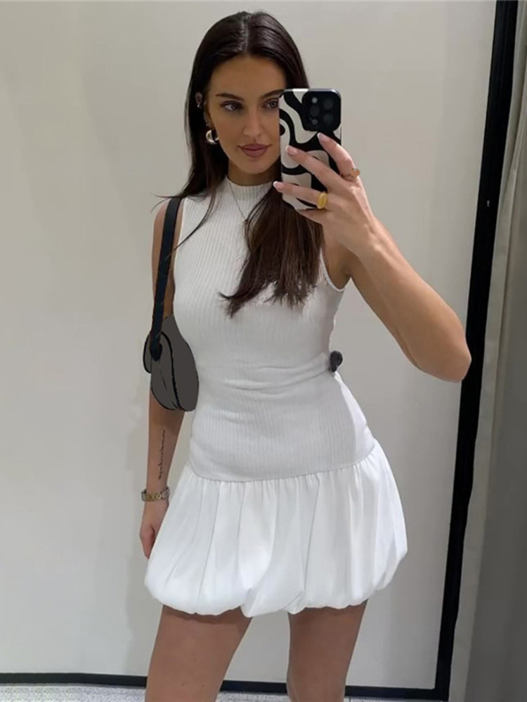 Hollow Out Backless Sleeveless Mini Dress For Women Summer Solid O Neck Slim Pleated Dress Elegant 2024