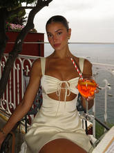 Hollow Out Bandage Mini Dress For Women 2025 Summer Spaghetti Sleeveless Backless Bodycon Club Party Dress