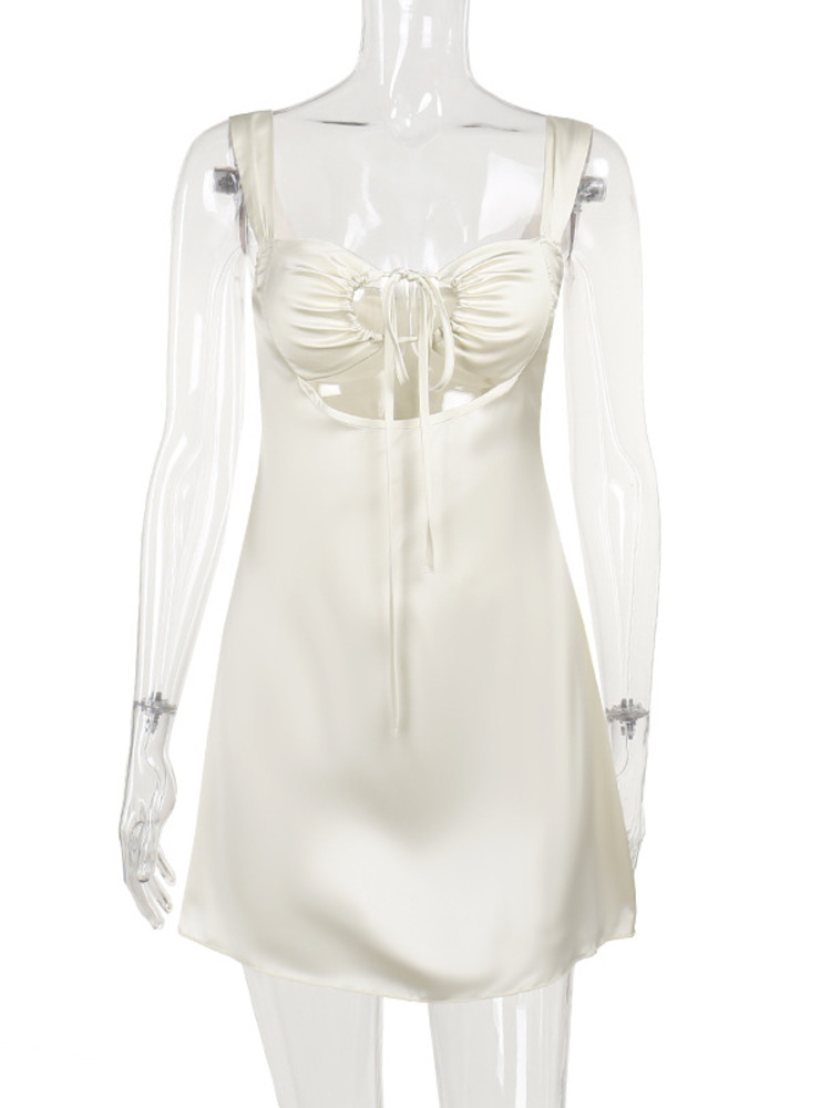 Hollow Out Bandage Mini Dress For Women 2025 Summer Spaghetti Sleeveless Backless Bodycon Club Party Dress