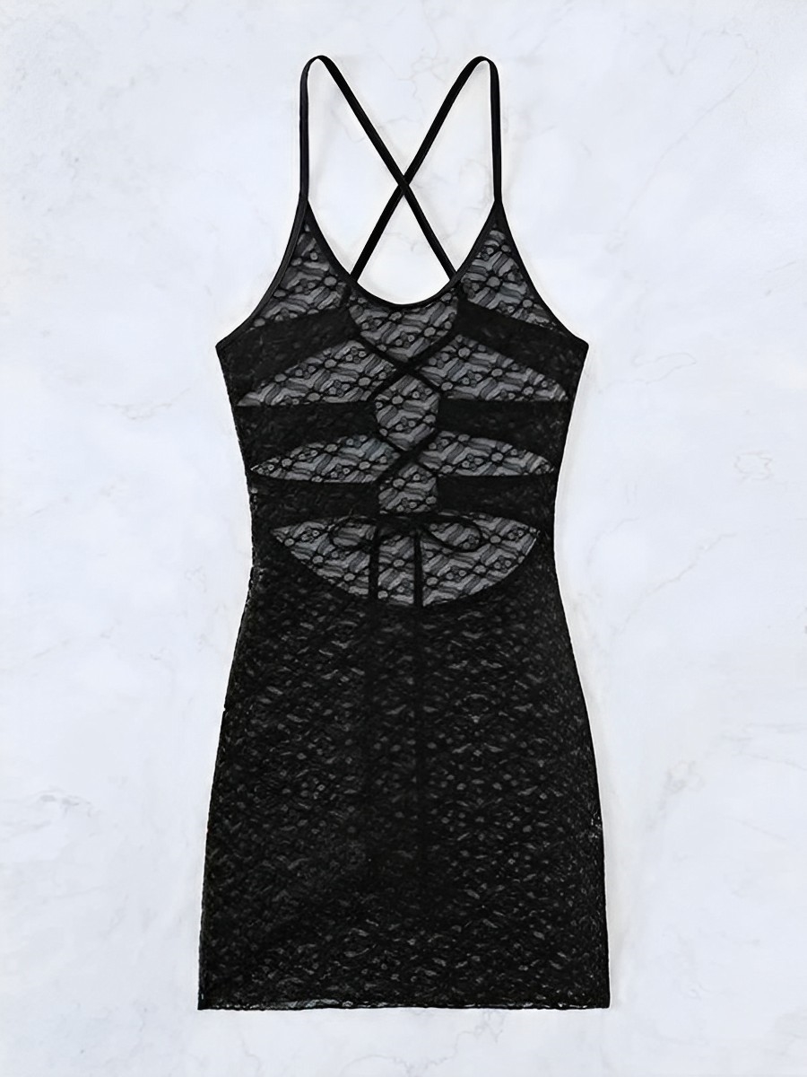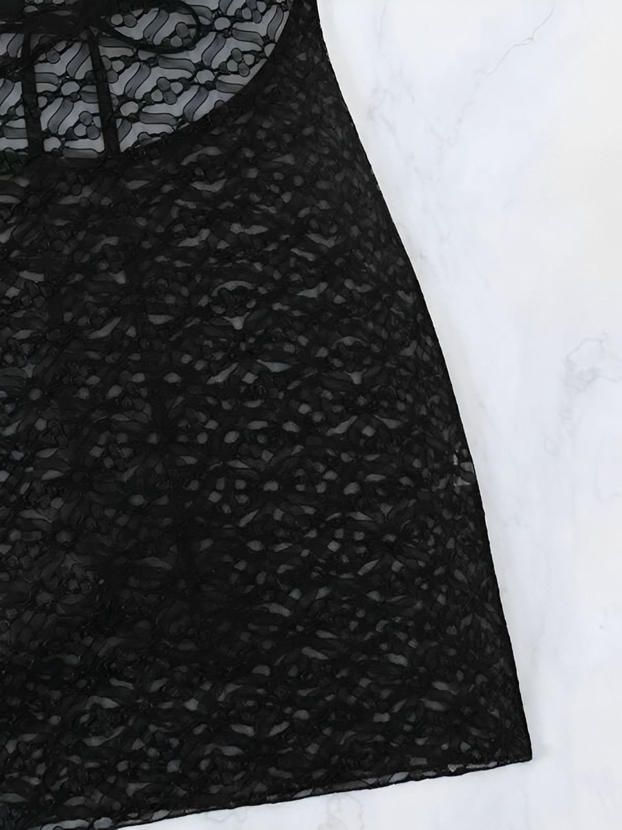 Hollow Out Drawstring Halter Bikini Cover Up 2025 Women Black Beach Skirt Swim Dress Bathing Suit Swimsuit Swimwear