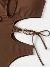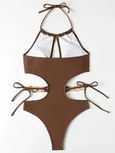 Hollow Out Halter Women Swimwear One Piece Swimsuit Female High Leg Cut Monokini Metal Rings Bathing Suit Swim Beach Wear