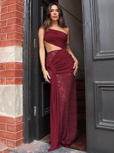 Hollow Out Lace Draped Maxi Dress For Women Gown One Shoulder Sleeveless Backless Bodycon Long Dress