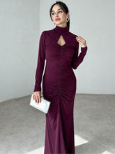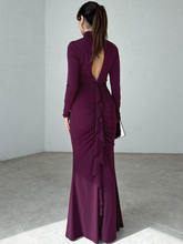 Hollow Out Long Sleeve Maxi Dress For Women Turtleneck Ruched Bodycon Club Party Elegant Long Dress