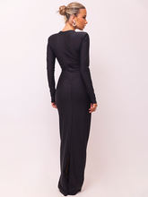 Hollow Out Long Sleeve Maxi Dress For Women Gown Solid Bodycon Ruched Club Evening Elegant Long Dress
