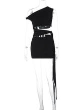 Hollow Out Oblique Shoulder Mini Dress For Women Robe Summer Black Sleeveless Backless Draped Skinny Club Dress