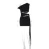 Hollow Out Oblique Shoulder Mini Dress For Women Robe Summer Black Sleeveless Backless Draped Skinny Club Dress