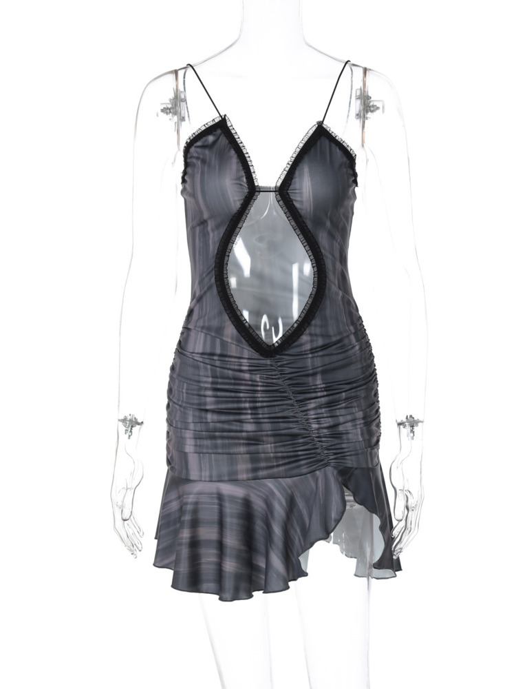 Hollow Out Spaghetti Strap Mini Dress For Women Off-shoulder Strapless Ruffled Ruched Skinny Split Dress Vestido
