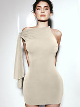 Irregular Sleeveless Mini Dress For Women Solid Off-shoulder Slash Neck Bodycon Slim Fit Club Party Dress