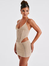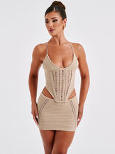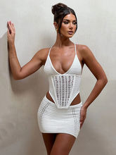 Knit Skirt Two Piece Sets For Women Backless Lace Up Sleeveless Crop Top And Mini Skirt Femme Club Party Skirt Set